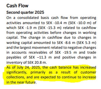 Jag vågar inte spekulera i när detta kommer att materialisera sig då sådana här saker tar ofta mycket längre tid än vad man väntar sig men jag tror nyhetsflödet kring amerikanska upprustningen inom autonoma sjö-drönare kommer tillta under hösten. I en panel med experter sade en amerikansk general som är ansvarig för programmet nyligen att senast januari 2026 kommer man ha en väldigt tydlig bild av vilka förmågor man kommer ha på plats. Vi går alltså förhoppningsvis en spännande höst till mötes. Marknaden finns i alla fall där..