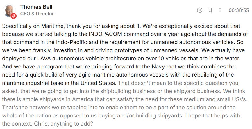 Jag avslutar med ett urklipp från senaste Leidos confcall där VD pratar om hur har ser på deras Maritime-divisions potential.