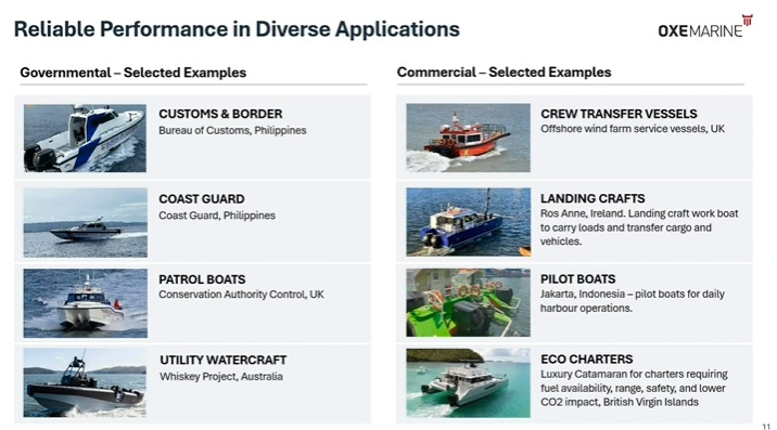 Leidos har redan ett kontrakt sedan oktober 2024 inom Replicator-programmet för att utveckla drönarförmågar. Deras båt där två OXE motorer används heter Sea Archer och genomgår nu sista testerna i fält. Dem har sagt att man vill producera 10 st Archers per månad. Archer är utrustad med två stycken OXE 300HP per båt.